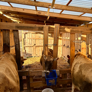 Good evening and happy Tuesday from Air2Ground Farms! The temps this morning didn’t feel like spring, although the calendar says it started today. We awoke to a heavy frost and 22 degrees. The top pic is Shelley and I back in our winter gear for the morning rounds. It is supposed to warm up and stay warmer for a while. The first batch of beef chickens will arrive this week, although we haven’t received the shipping notification. That means they will probably arrive Thursday. We took 4 hogs to the processor yesterday, more later. On Sunday, after I reached my limit of frustration with the sheep, we moved them into a lambing paddock near the house. They were constantly getting out and eating the new grass that needs to get established. Shelley finally had enough of my exasperation and gave me the “That’s it, we’re moving the sheep!” declaration. So, we set up a new paddock with 3 hot wires and then netting just outside the hot wires, making it nearly impossible for them to get out. We moved them into the new paddock without much incident (I had to chase one particularly stubborn ewe up and down the hill and in and out of the woods a few times). They are now settled in their new paddock and Tank, the livestock guardian dog, is in with them. He has been bored without his sheep for the past couple of months and is now back in a job. Similarly, the layer hens have been pushing their way out of their netting. I fixed a fence charger this morning and now their fence is hot and they have stayed put. The bottom three pics are of the Jersey girls in their gates, enjoying their breakfast this morning. On the far right is Artois, a stellar student who figured out the entire process in only two sessions. She is looking really good and has fully integrated into the herd and our program.