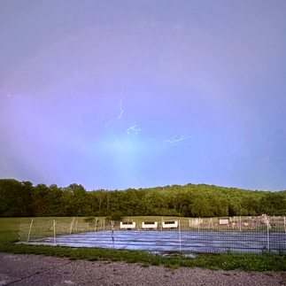 Good evening and happy Fast-Jet Friday from Air2Ground Farms & Air2Ground Meats! The fast jets today are the Mighty-Mighty F-15E Strike Eagle. The first pic is a 6-ship from the 494th Fighter Squadron Panthers as they returned to RAF Lakenheath, UK this week from a location in the Middle East. You don’t often see a 6-ship formation, so this is a great pic. The next pic was taken this week in Wales as a jet from the 492nd Fighter Squadron Bolars circles a mountain at low level. The animals are doing very well this week. The new hogs are now just part of the farm. One leaves on Monday to go to freezer camp. She is older and although very flavorful, her meat would be tough so we are having her made into whole-hog sausage. It’s amazingly flavorful because it has all of the cuts, like tenderloin, hams, shoulders…everything. The ewe/lamb flock, the rams, the dairy cows, and the beef cows all moved to fresh pastures this week, actually yesterday and this morning. We walked 7 1/2 miles up and down the hills yesterday taking down and putting up temporary fences for the different groups. While physically exhausting, it is awesome to watch the animals enjoying fresh pastures. This morning, when we moved the beef herd, their bellies are so full of fresh grass that they didn’t even get excited for their new pasture. They just meandered around trying to find some particularly tasty bite to nibble. Today, we spent the majority of the day planting the garden and recording it for our next YouTube Video. We’re very excited to have a weed fabric and automatic watering system that should make this year’s garden much more manageable and enjoyable. After the bad storms passed this week, I snapped a pic of a rainbow arcing around the garden with a lightning bolt in the middle.