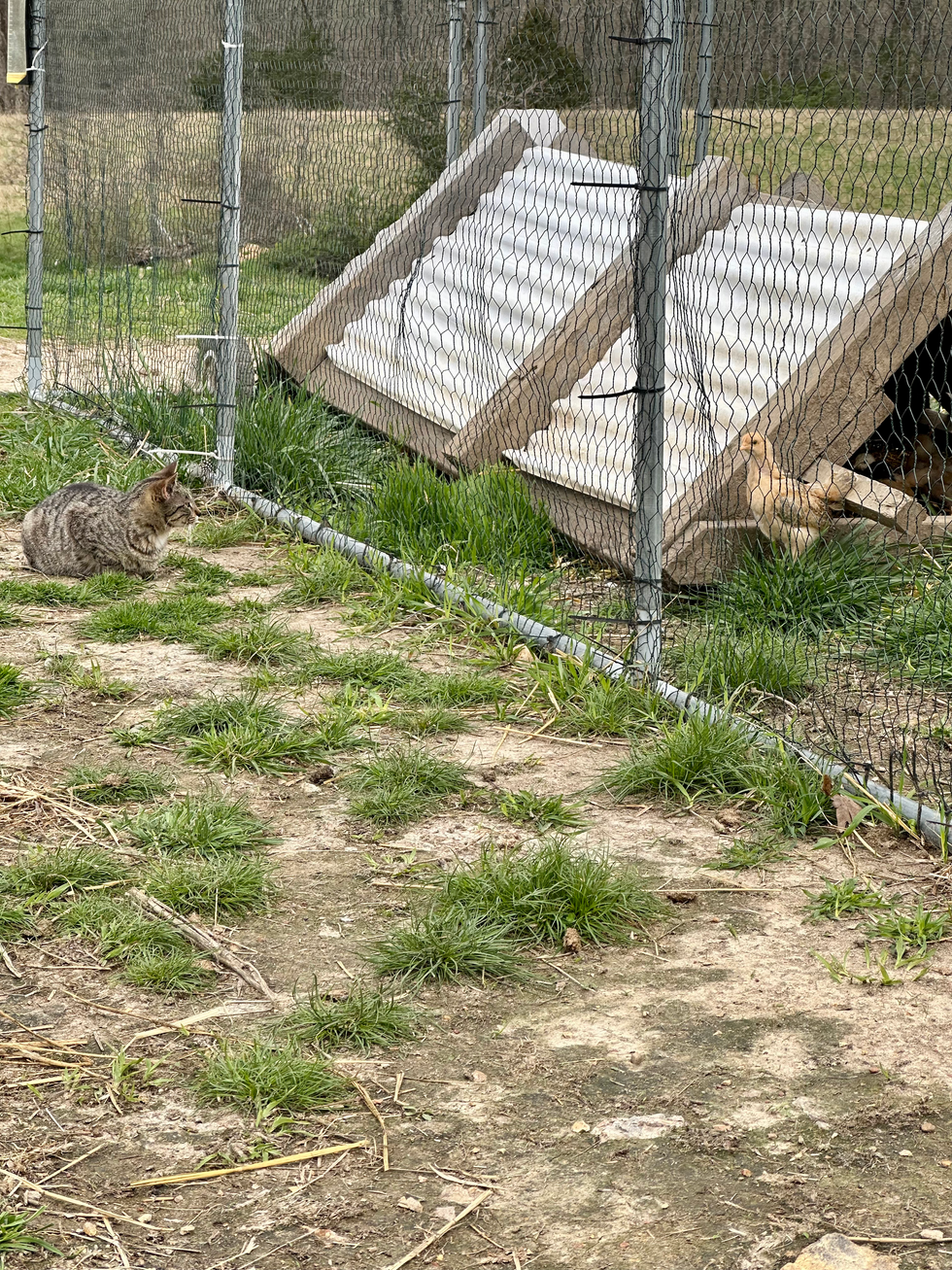 Happy-happy-happy Fast-Jet Friday—last pic!! The cool temps quickly subsided this morning into what will be a mid 60s day. The third and fourth pics are the beef chicks as soon as we put them outside. Pics 5 & 6 are the layer chicks. The beef chicks and layer chicks all survived their first night outside! We caught an opossum in the trap about 25 feet from the beef chicks. I will ‘relocate’ it today and reset the trap. The cats are perplexed with the layer chicks and are certain that they can find a way into the pen. I’m sure they just want to play. Check out the cat in the 6th pic. The guineas have taken to roosting on top of the pen where we put the layer chicks. They fussed a bit at sunset last night but soon gave up and roosted there anyway. The guineas have started laying eggs this season. They only lay during spring and summer, not too far down the domestication timeline from their wild roots. We are going to try our hand at incubating some guinea keets. They incubate a tiny bit cooler and a week longer than chicken eggs. Our incubators have a digital thermostat and will work fine. We shut our main chicken flock into their shaw very early this morning. Our chick-shaws are on wheels so that we can transport the birds. As part of our morning rounds, we moved the flock onto the garden. It had already started sprouting grass and the mushroom compost was sitting on top of the garden soil. The flock will spend 2 days weeding and turning the soil before we move them along. We just decided that 5 minutes of labor moving the birds was better than a few hours pulling grass and turning the dirt. We loosed the lambs this morning! They have been in their winter paddock for a few months now and we decided to give them a few hours of green grass. We will go back out early this afternoon and put them back in their smaller paddock and give them some hay. Hopefully this method of slowly introducing them to the spring-green will keep their guts healthy. We moved 13 chicks from the incubators into a brooder and 3 more are in the incubators, drying after hatching this morning. We are still enamored by the ability to hatch our own birds. I’m sure it will soon loose its pizzazz but for now we all love the process. Yesterday we moved the birds outside and filmed the process for a video. Today we will train the dairy calves and Makaylah is having an Easter party.